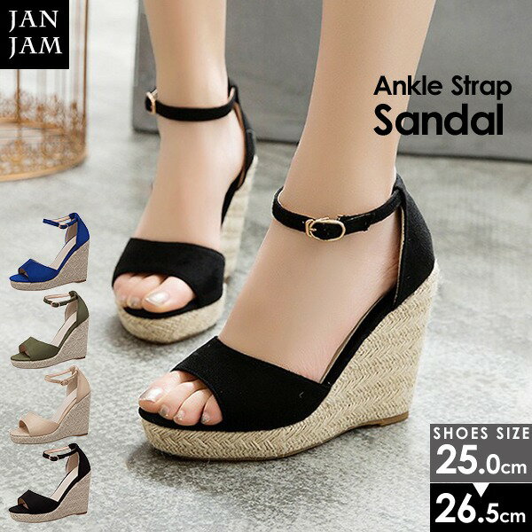 大きいサイズ レディース サンダル【25〜26.5cm】ウェッジソール アンクルストラップ ジュート風 厚底