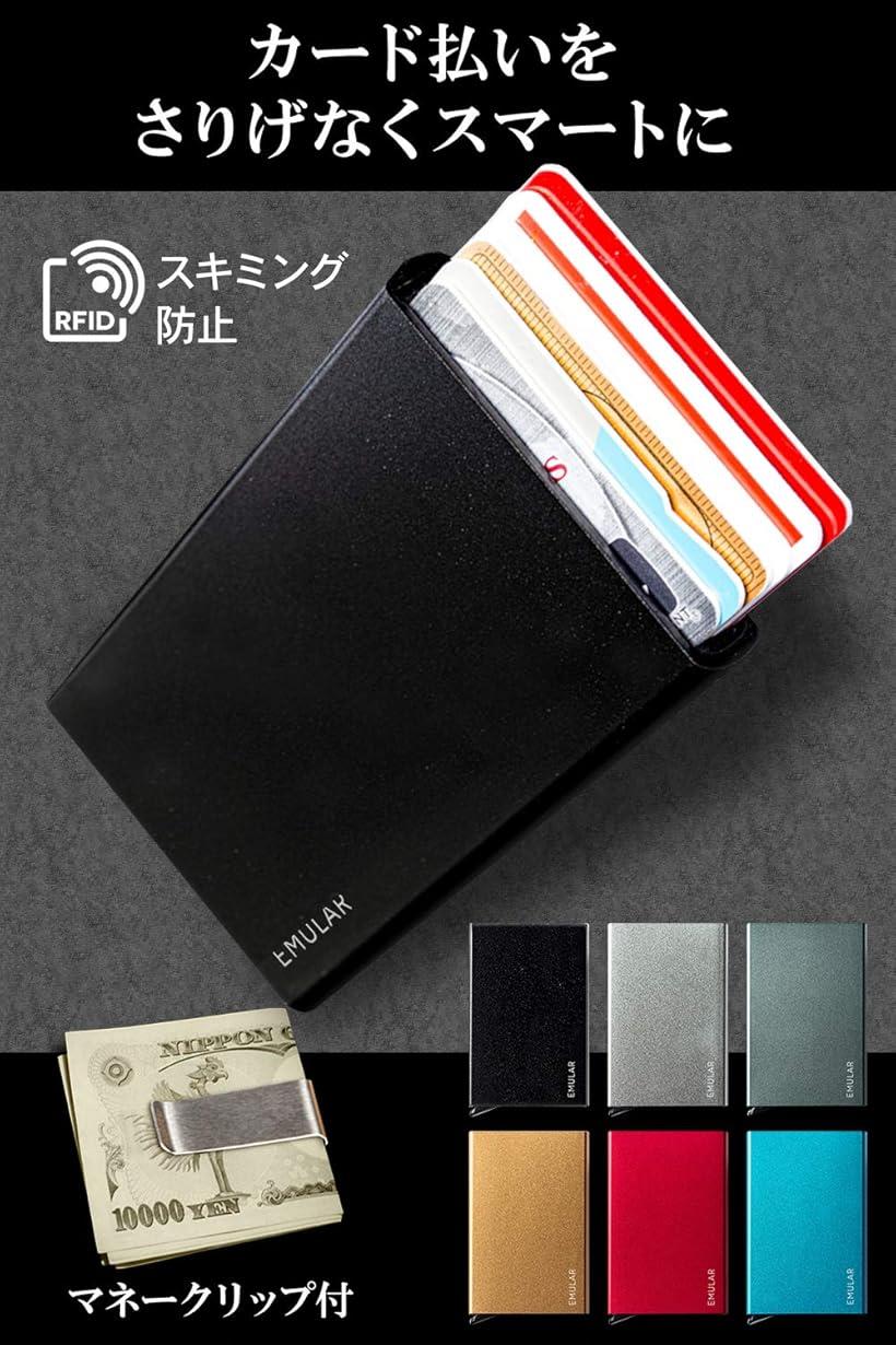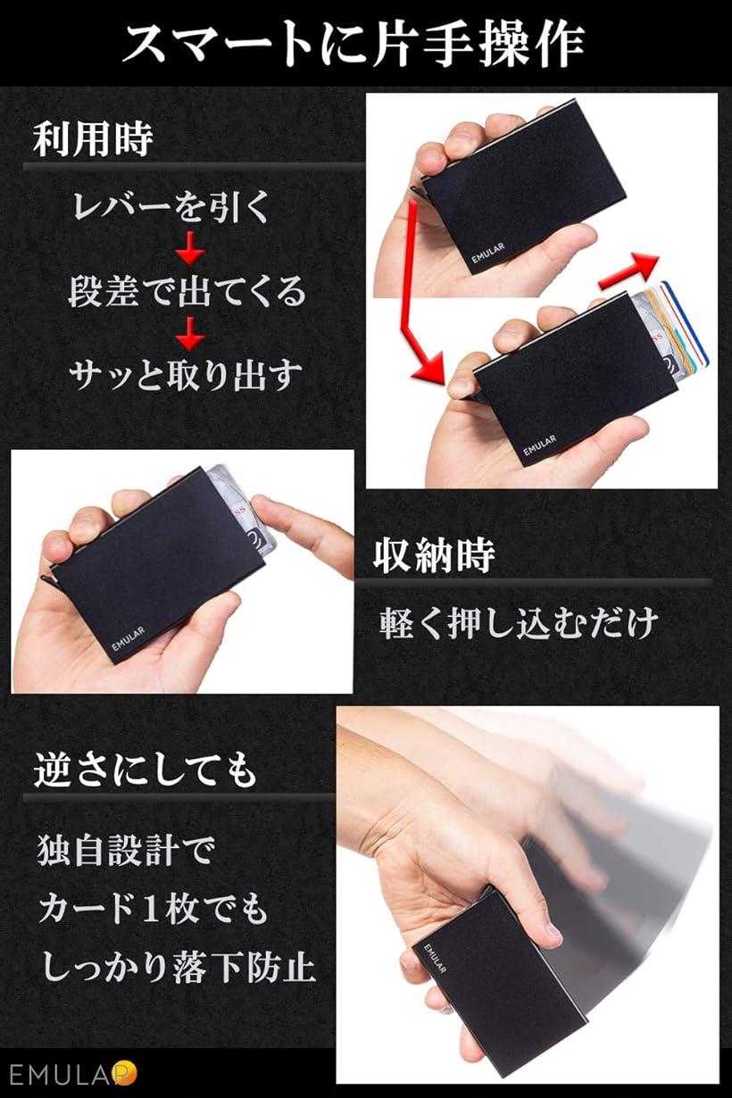 EMULAR クレジットカードケース スキミング防止 磁気防止 スライド式 スリム 男女兼用 7枚収納(ブラック)