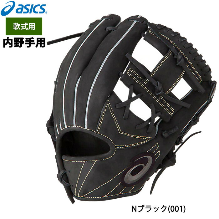アシックス 軟式 グローブ ヌバック ネーム刺繍10円 ブラック 内野手用 セカンド ショート サード 野球 グラブ 一般用 M号対応
