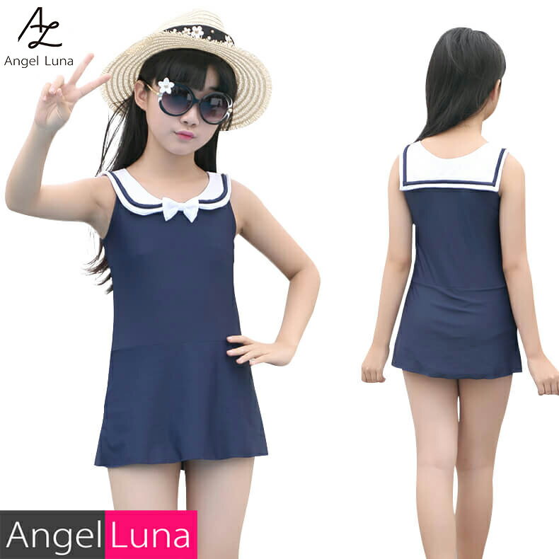 あす楽対応可 スクール水着 女の子 セーラー服 マリン キッズ kids オールインワン ワンピース 一体型 無地 シンプル 裏地付き 透けない ネームタグ付き 子供 こども 小学生 中学生 スカート スイムウェア ジュニア 女児