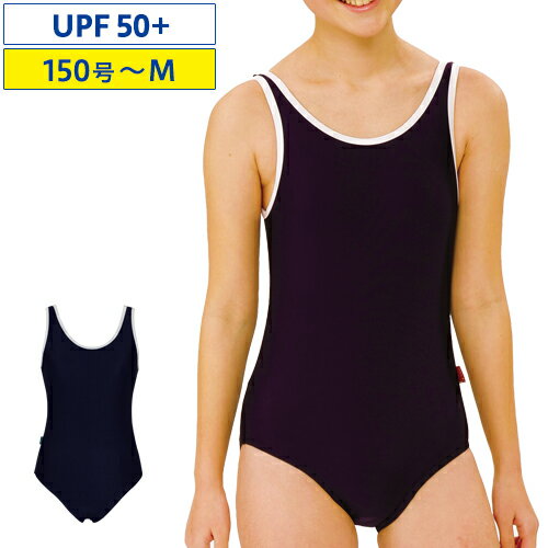 UVカット(UPF50+) スクール水着 女の子 ワンピース Uカットタイプ 小学生 中学生 水着 女児 大きいサイズ 110 120 130 140 150 160 170 紺/ネイビー 110-170cm 865645 【TA】